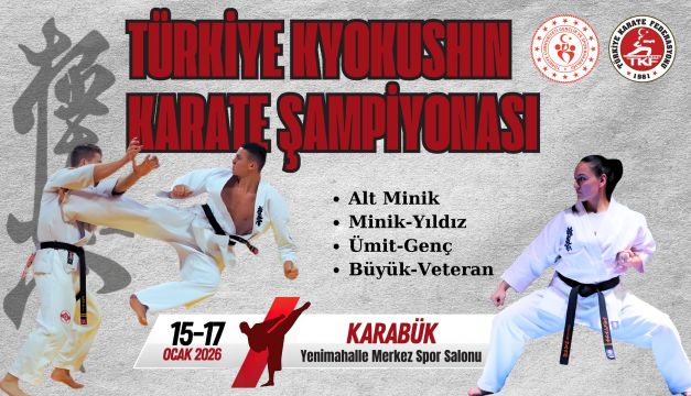 Türkiye Kyokushin Karate Şampiyonası 15-17 Ocak 2026 tarihlerinde Karabük Yenimahalle Merkez Spor Salonunda düzenlecektir.